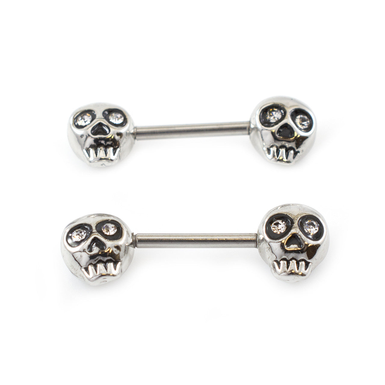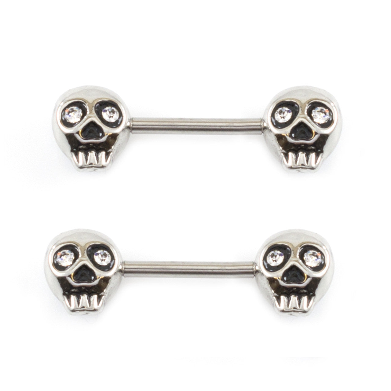 - Theme: Pair of Nipple Rings with Skull Faces & Clear Gem Eyes
