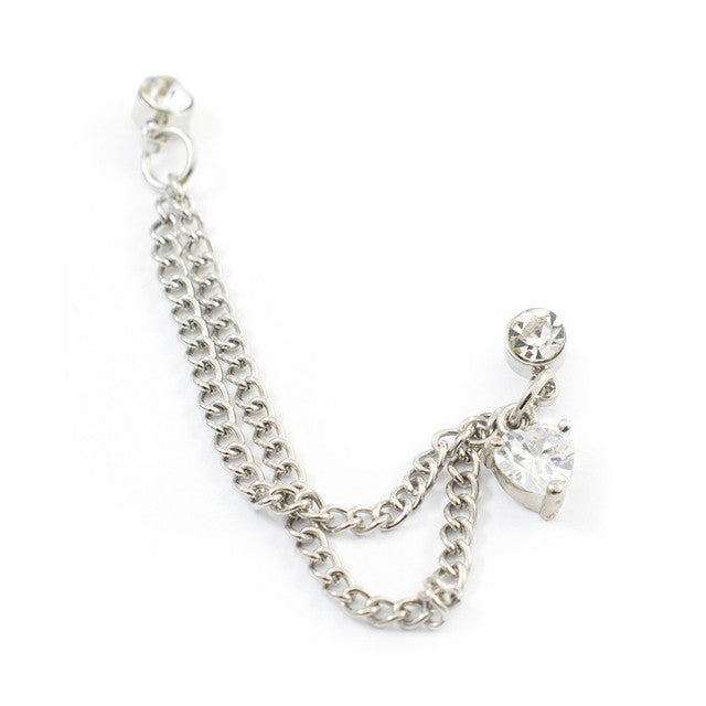 Indulge in romance and sophistication with this Surgical Steel Cartilage Chain Dangle Earring adorned with a clear heart motif. Whether you're dressing up for a special occasion or adding a touch of glamour to your everyday look, this earring is sure to turn heads. Its versatile design makes it suitable for a variety of piercings, while the high-quality materials ensure long-lasting wear. Elevate your style with this exquisite piece of jewelry, designed to capture the essence of love and beauty with every wear.