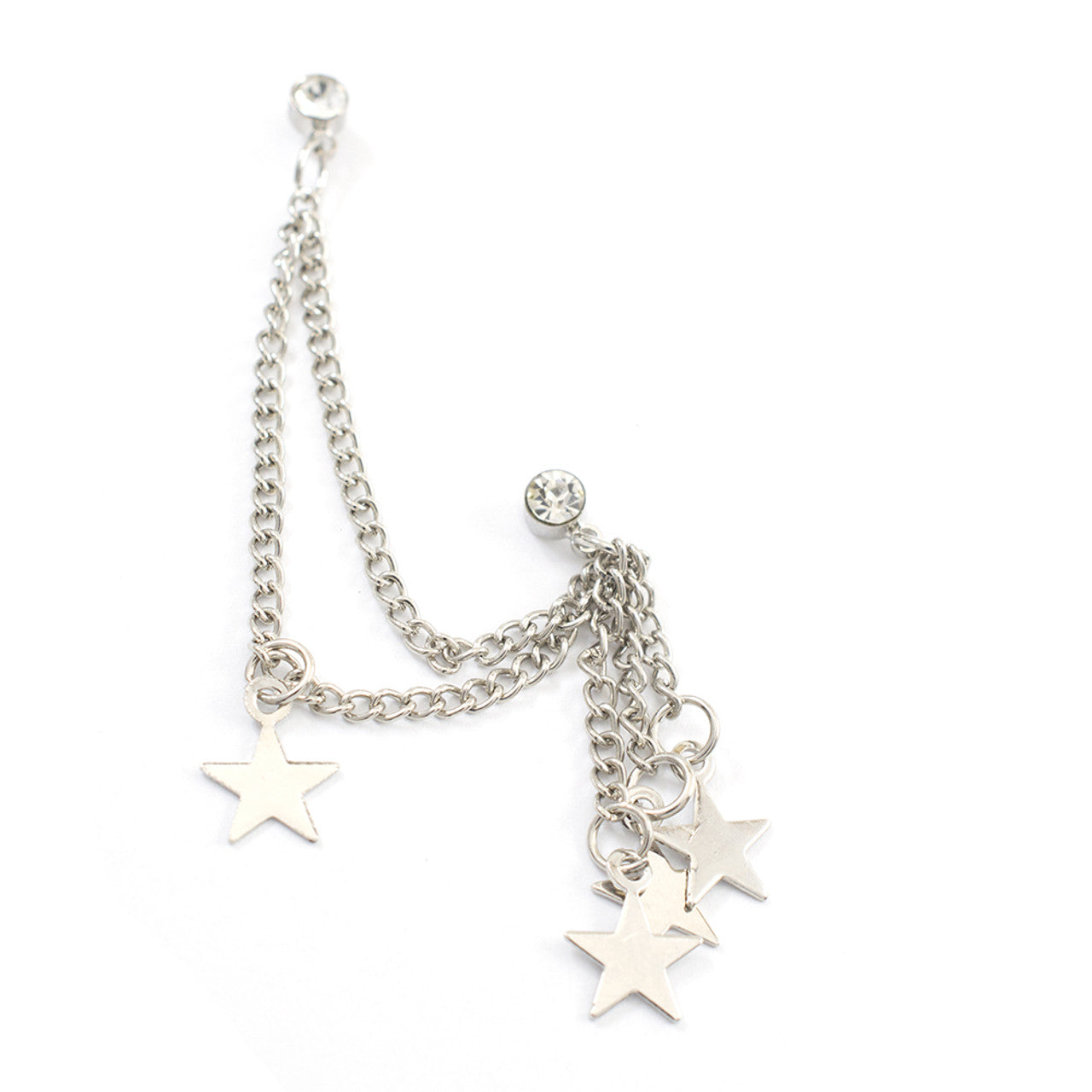 Embrace the magic of the cosmos with this Surgical Steel Cartilage Chain Dangle Earring embellished with charming star charms. Whether you're seeking to express your love for astronomy or simply adore the celestial aesthetic, this earring is sure to captivate. Its versatile design and high-quality construction make it suitable for various piercings, ensuring effortless style and comfort. Elevate your look with this enchanting piece of jewelry, designed to evoke wonder and awe with every wear.