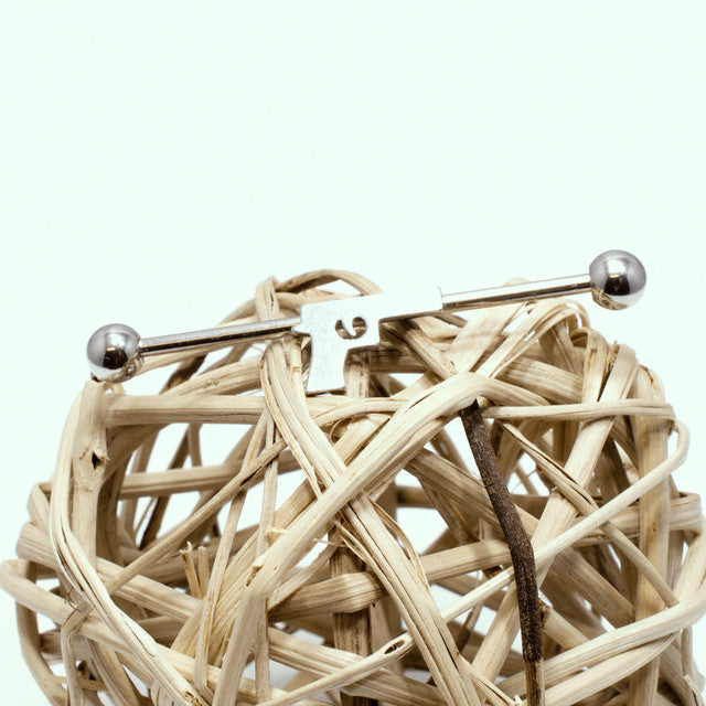 With a 14 gauge (1.6mm) thickness and a comfortable 38mm length, this barbell is perfect for industrial ear cartilage piercings. The handgun charm adds a bold and edgy touch to your piercing aesthetic.