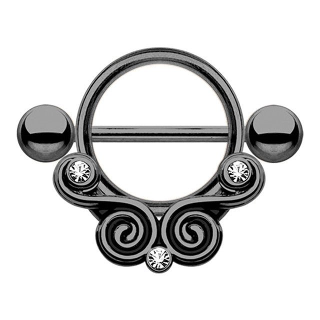 Surgical Steel Nipple Ring Barbell Shield 14 Gauge & Gem Lace Swirls