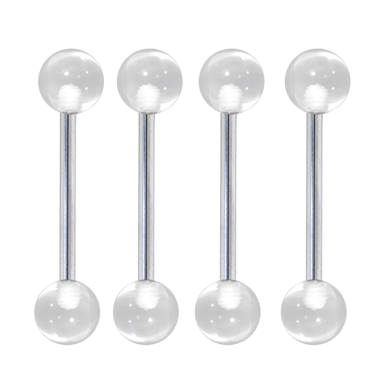 - Sold As: Package of 4 Total Straight Barbells With Clear Acrylic Ends.
