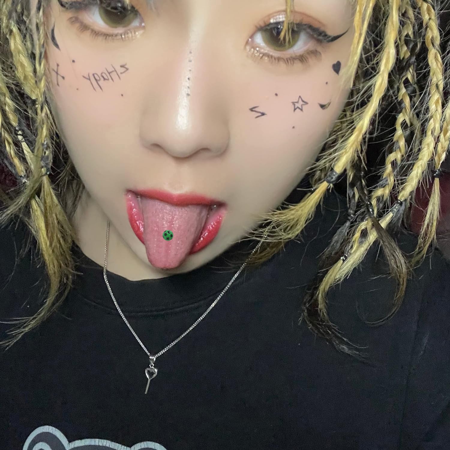 This tongue ring is not only visually appealing but also versatile. The star-patterned acrylic ball ends are available in four vibrant color combinations: Green/Black Stars, Pink/Black Stars, White/Brown Stars, and White/Pink Stars. Whether you're accessorizing your oral piercings, such as the tongue, or exploring other piercing options like ear cartilage (transverse lobe), this straight barbell tongue ring promises to make a statement. Sold individually, it offers a stylish and affordable way to personalize your piercings with a hint of stellar elegance.